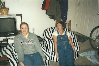 Good memory! We were at my cousin Russ & Scott's apartment and they weren't very exciting so we were entertaining ourselves. They did get those chairs from Zions and we were being hot dogs like in Mrs. Doubtfire. We were silly!