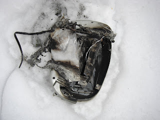 Now back to my story. I walk into the kitchen thinking that Jared forgot he had bread in the toaster and that the bread would be over done. Well to my surprise the bread is not only over done it's on FIRE! I quickly unplug the toaster in hopes that the flames will go out but they don't so I think to myself do I pour water on it or do I put baking soda on it. I'm some what stunned that this is even happening and I run to the hallway and yell to Jared that the toaster is on fire. I put Ethan down and the go back to the kitchen. Now the flames are getting bigger and I'm really freaking out. So I grab a kitchen town, open the back door and then throw the toaster into the snow. Then I start opening all of the windows and doors because our whole house if full of smoke and I mean real smoke. It's so smokey that I can hardly see. Then I start turning on our ceiling fans and I look out side to see that the stupid toaster is still on fire! I grab a pot from the sink fill it up with water and walk outside in my garments and dump the water on the toaster. After a big hissing sound the flames are gone. But just to make sure I dump too more pan fulls of water on the toaster. At this point Jared is finally out of the shower and comes into the kitchen. I tell him what has just happened and he laughs...and then I start laughing. Jared said that he put the bread in the toaster and then went to change Ethan and totally forgot about it.